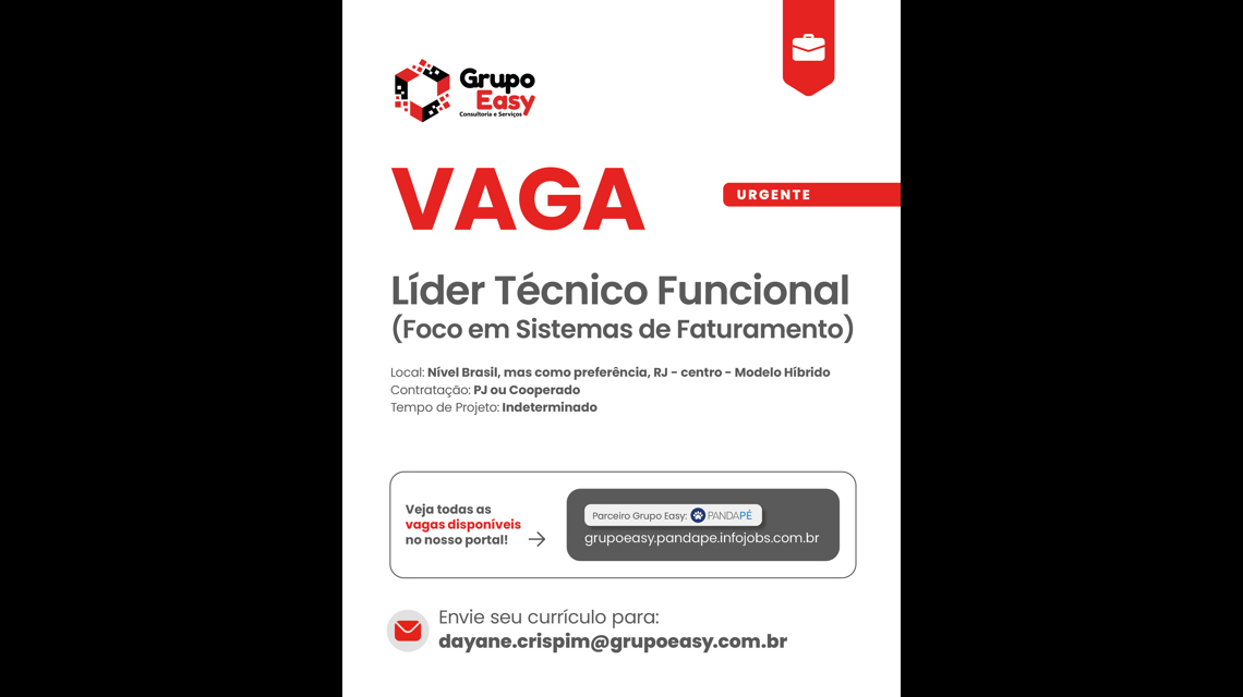 TEMOS VAGA PARA LÍDER TÉCNICO FUNCIONAL (FOCO EM SISTEMAS DE FATURAMENTO) | GRUPO EASY
